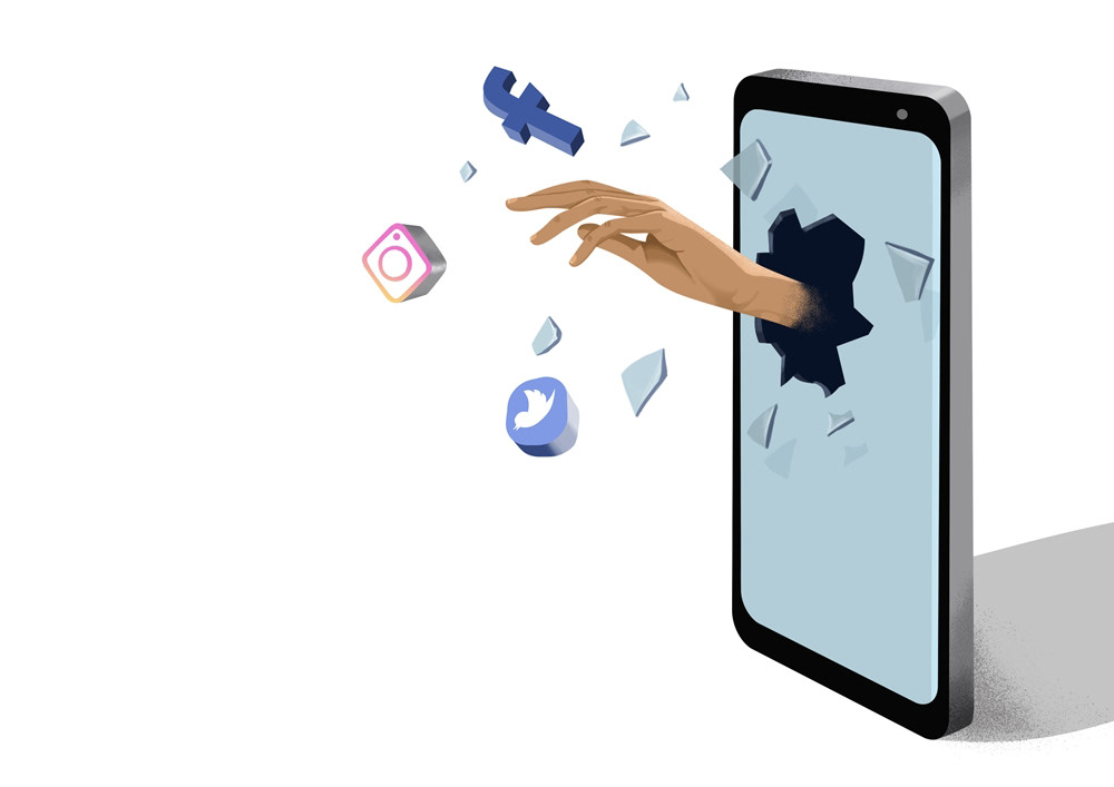 wo self initiated illustrations representing the ease of logging on to so social media and the difficulty of logging off.